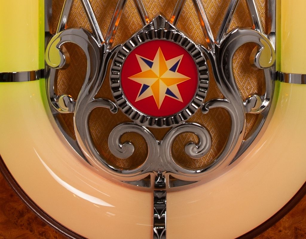Bentley-Style Chrome Grille: Enhance the front of your jukebox with a chrome grille situated behind the main latticed metalwork. This adds an extra layer of depth and shine to the cabinet, providing an unmistakable, premium nostalgic look.