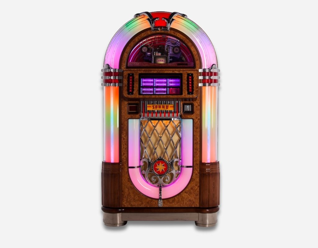 Own a masterpiece of musical history. The Vinyl SL45 is a handcrafted tribute to the golden age of the jukebox. It allows you to play your classic records on a machine built with contemporary precision and the latest in high quality sound technology.