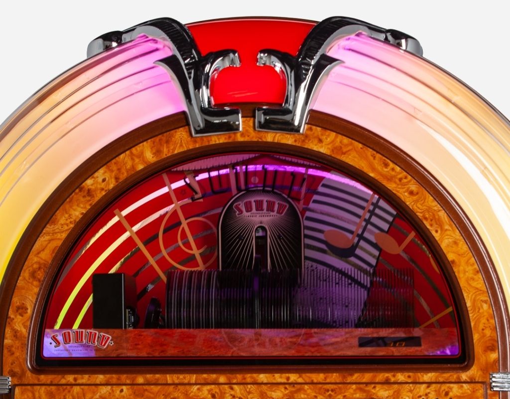 Make a dramatic impact with the ‘Diamond Pack’ lighting option now included in all Dome Top Sound Leisure Jukeboxes. Instead of the regular traditional lighting bars and coloured pilaster rotiseries, Sound Leisure pack the dome and side diffusers with the latest combination Red, Green and Blue LED technology!