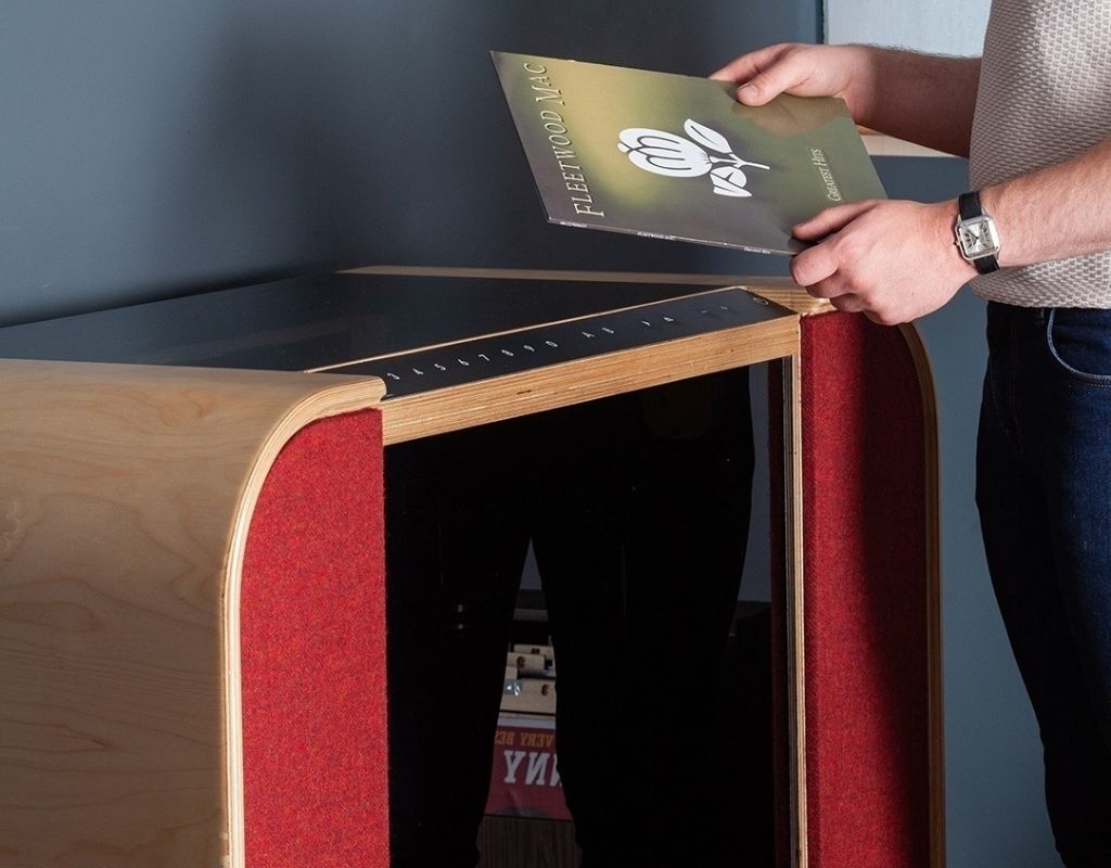 With over 40 years of cabinet-making experience, Sound Leisure has crafted this stylish jukebox by hand by layering birch ply sheets, shaping and veneering them, and then finishing them off with a hand-polished surface. The skilled craftsmen and women at Sound Leisure take pride in producing high-quality products that are unique and built to last.
