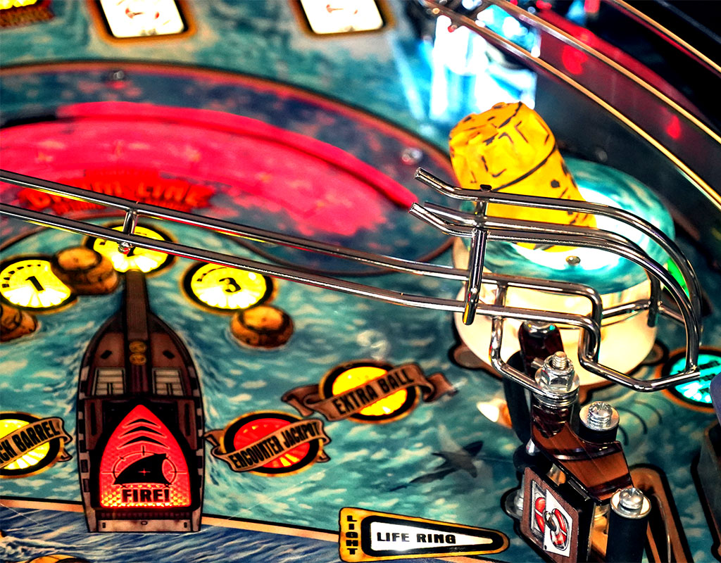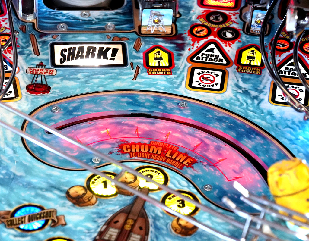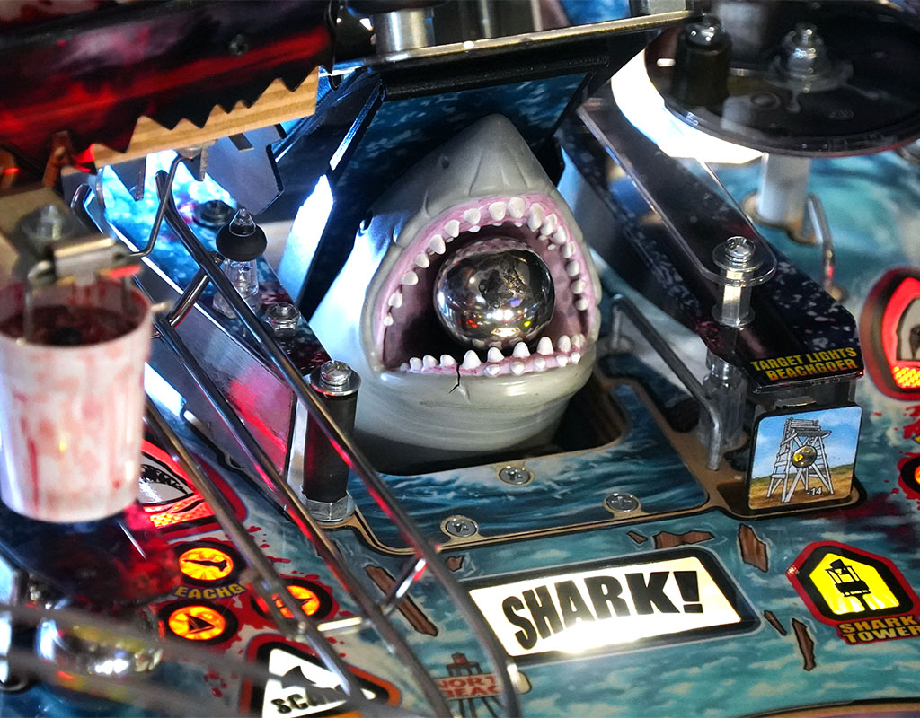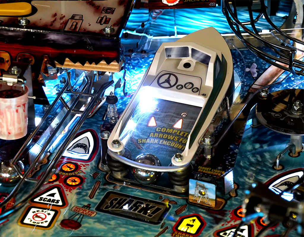 - Motorised Shark Fin - From the depths of the playfield comes the great white's menacing shark fin. Hit this moving target as it moves from left to right.