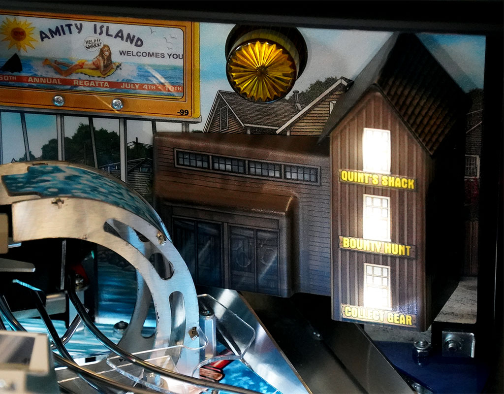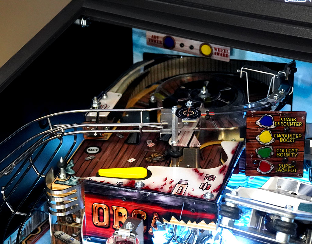 - Orca Vessel Mini Playfield - Quint's fishing boat gets its own mini playfield, complete with its own horizontal spinner and ramp shot.