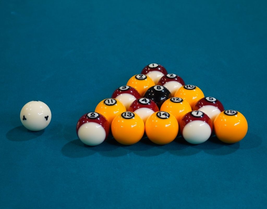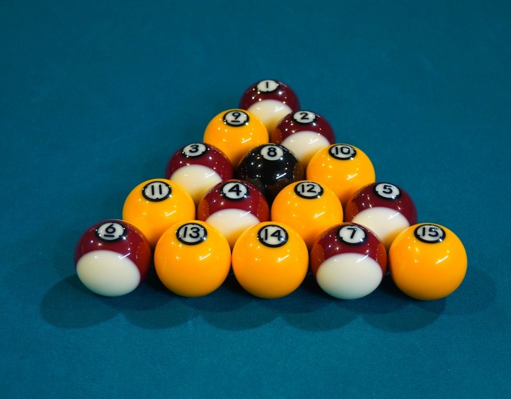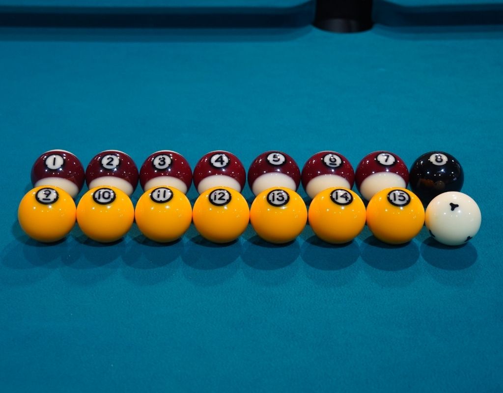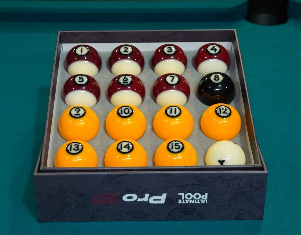 The set includes the classic red and yellow layout but with Ultimate Pool’s unique aesthetic twist: each object ball is individually numbered for increased visibility and versatile practice drills. The object balls are a standard 2-inch English pool size (50.8mm), weight-matched at a precise 119g. The included 1 7/8-inch (48mm) cue ball weighs 98g and features printed training dots, making it compatible with all coin-operated and home tables featuring a ball separator.