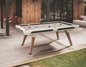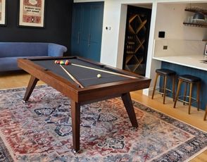These space-saving combinations of dining table and pool table are very popular, particularly with families. With a proper slate bed playing surface, they play as well as any "normal" pool table.