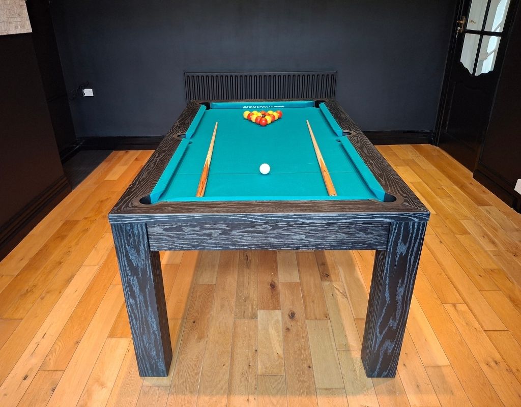 The Chester Pool Dining Table combines luxury design with tournament-grade performance. Made from ethically sourced solid wood, it meets WEPF standards with precision cushions, pocket openings, and a ball return system. Its slate bed is levelled to 0.02mm per metre, ensuring perfect play, while professional cushions offer consistent rebounds.