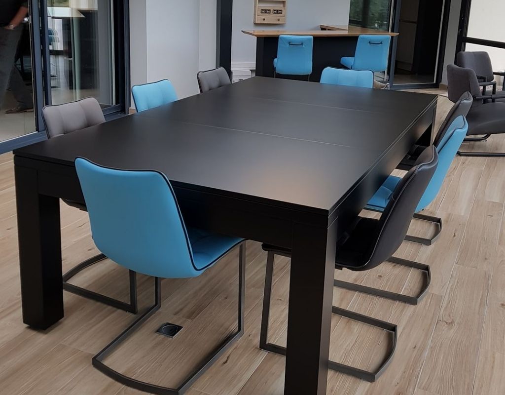 Hidden Pool Table: The concealed pool table remains completely out of sight when the dining tops are in place.