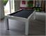 The Lewis combines Montfort’s elegant pool table craftsmanship with a solid wood and concealed metal frame construction. Its flush cabinet, clean lines and square legs result in a stunningly contemporary pool table design. It uses a single-piece slate bed as standard, ensuring a solid, secure and stable professional playing surface for all size options which are 6ft, 7ft, 7.2ft or 8ft. Crafted in either a solid Beech or Oak materials, this table can be paired with matching dining tops and benches, making it a versatile modern pool dining table..