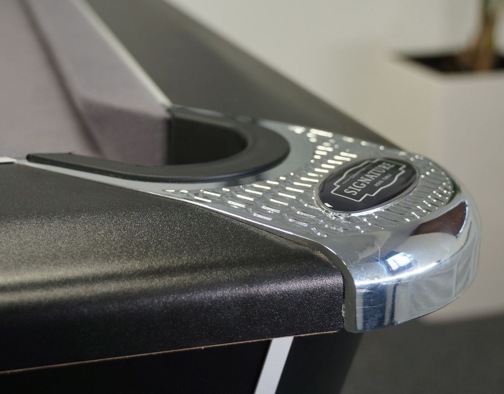 Streamlined Chrome Corner Caps: Inspired by US pool design, offering more space for comfortable potting.