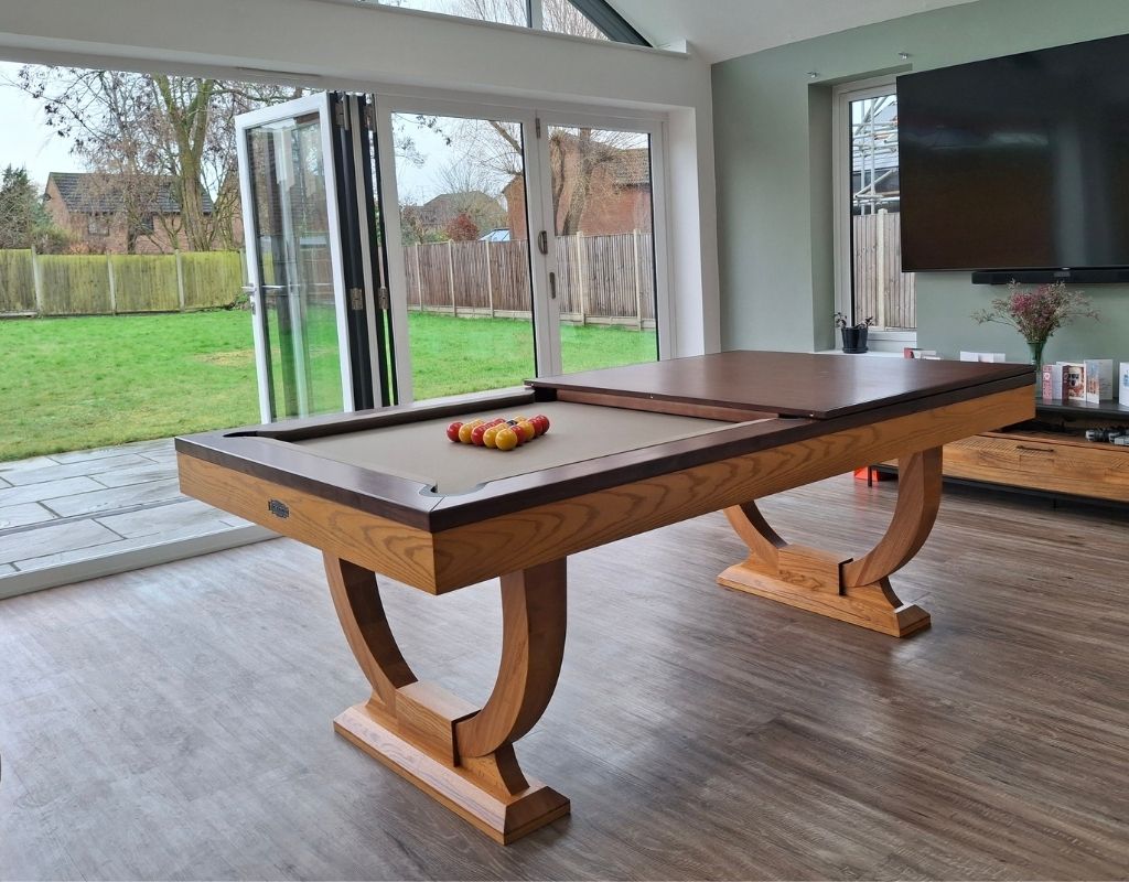Hidden Pool Table: The concealed pool table remains completely out of sight when the dining tops are in place
