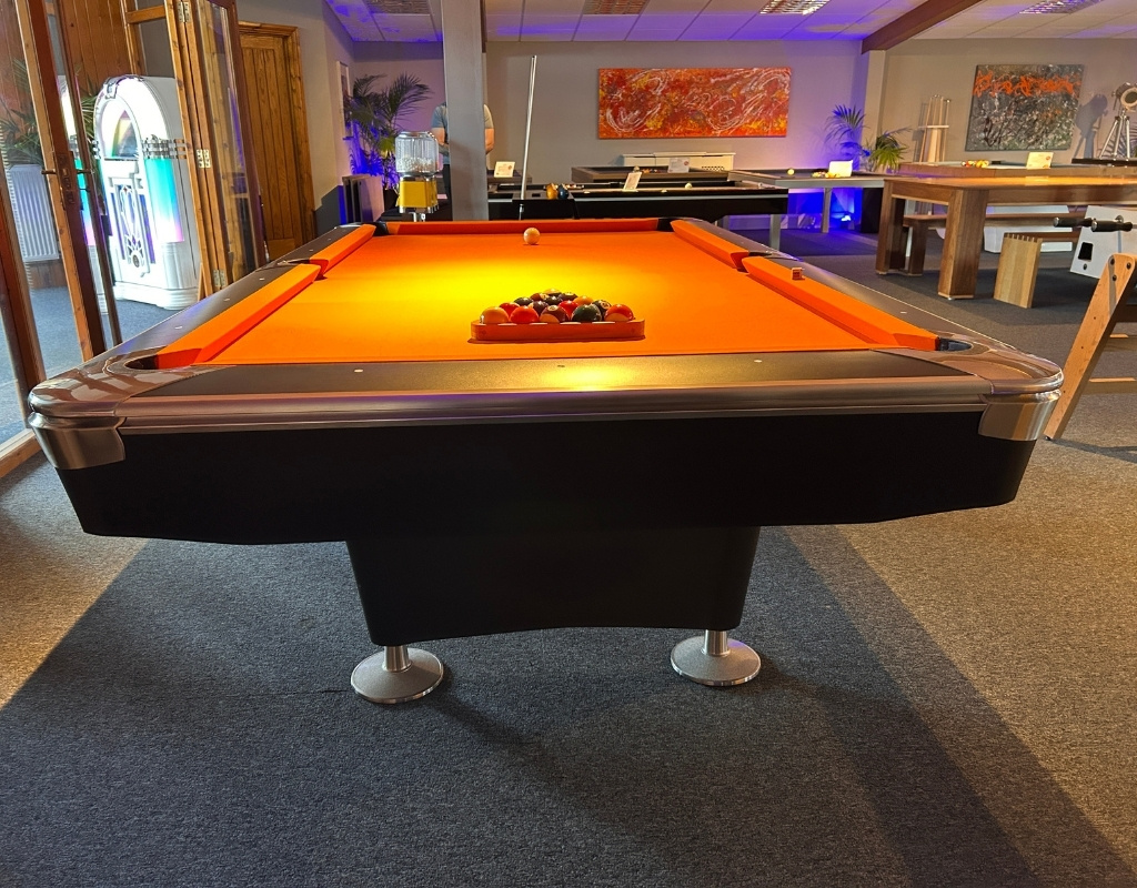 8ft tables are supplied with a 3-piece sectional slate playing surface. This makes installation easier due to the larger size and weight of those slate beds. This also makes it easier to get up or down stairs. However, once the table has been installed you absolutely cannot move it, not one centimetre, because the slates will shift and go out of level and the filler between the slates will come loose. The only solution is to have the table re-installed and a brand new cloth fitted, which is very expensive.