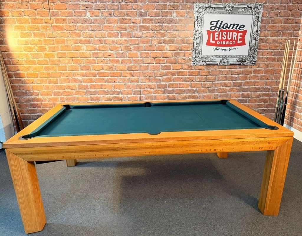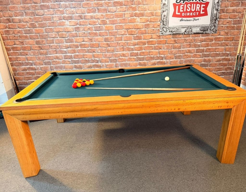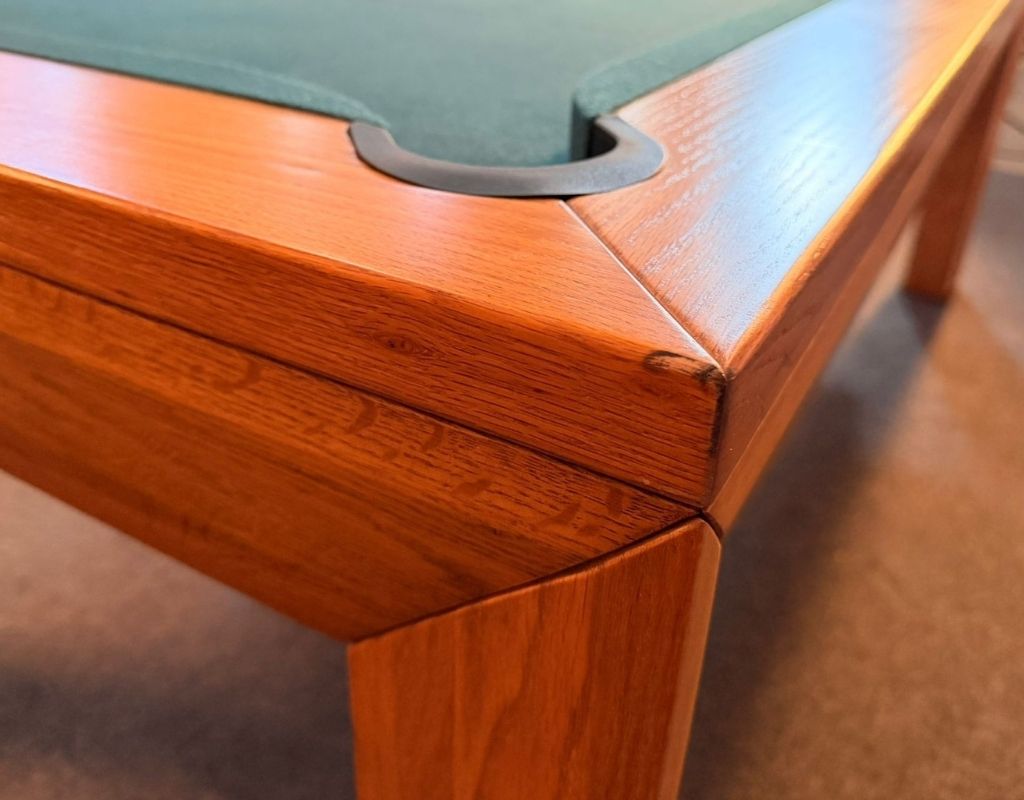The Anderson is an English pool table using 2” red and yellow balls as standard, with a one piece slate bed, available in 7ft size, Oak finish & with a Smart Ranger Green cloth.