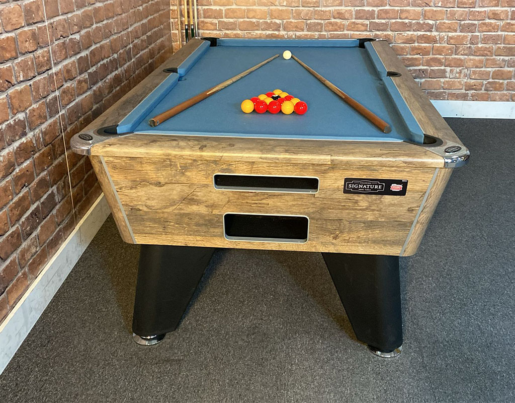 The Signature Tournament Pro Edition Pool table is designed for English Pool as standard.