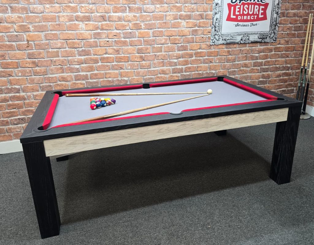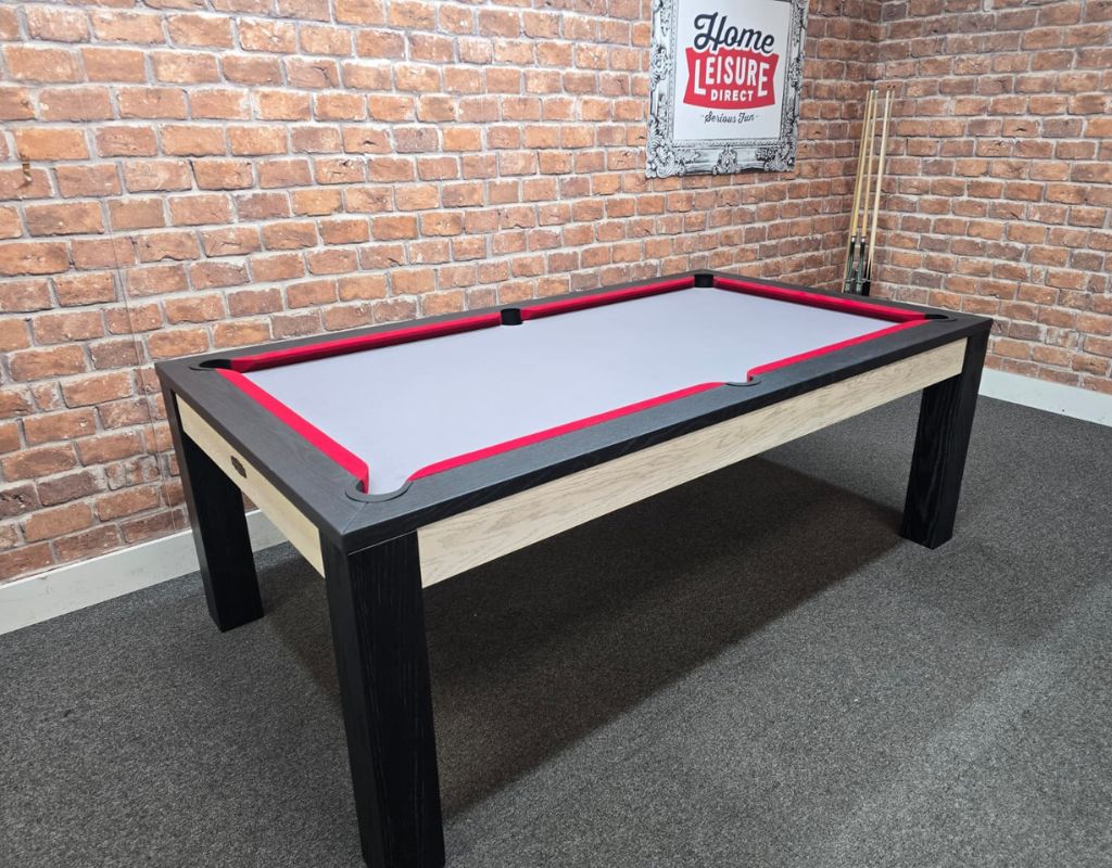 The Chester is an English pool table using 2” red and yellow balls as standard, with a one piece slate bed. Available in 7ft size, finished in Black and White Solid Wood, and fitted with Smart Red cushions and Ultimate Grey Slate.