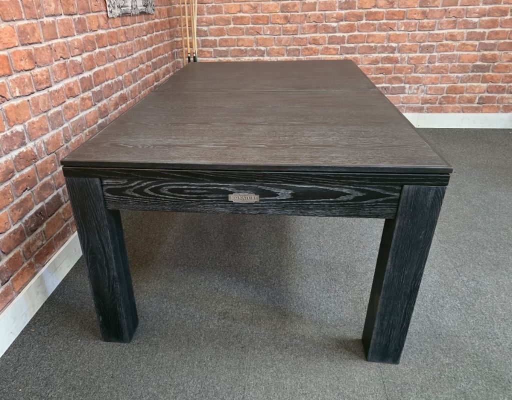 The Signature Chester Black Oak Solid Wood Pool Dining Table: 6ft - Warehouse Clearance comes with Free Delivery and Installation, over £250 of Free Accessories, plus we are the exclusive retailers for this table.