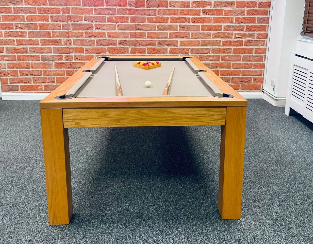 The Chester is an English pool table using 2” red and yellow balls as standard, with a one piece slate bed. Available in 7ft size, finished in Black Oak, and fitted with Smart Sage cloth.