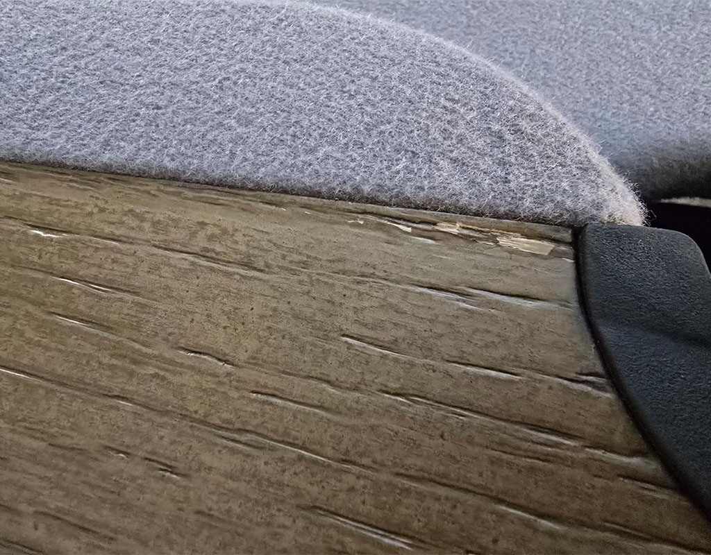 - Cracking to the finish on the top frame also by one of the pockets (see photos)