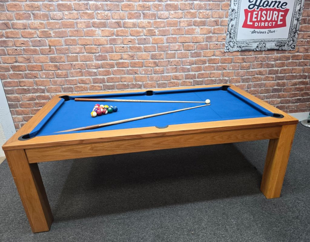 The Chester is an English pool table using 2” red and yellow balls as standard, with a one piece slate bed. Available in 7ft size, finished with Oak. It then has Smart Navy cloth.
