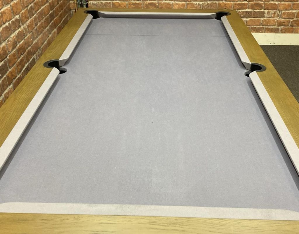 The Chester is an English pool table using 2” red and yellow balls as standard, with a one piece slate bed. Available in 7ft size, finished with a Match Silver Bed Cloth and Smart Silver Cushions.