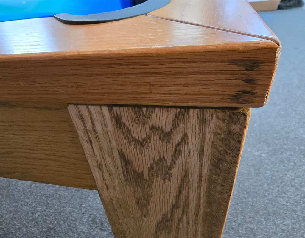 This table is part of our Warehouse Clearance sale. These pool tables have minor defects and some cosmetic imperfections. Please see the photos for details. More details for this table are as follows: