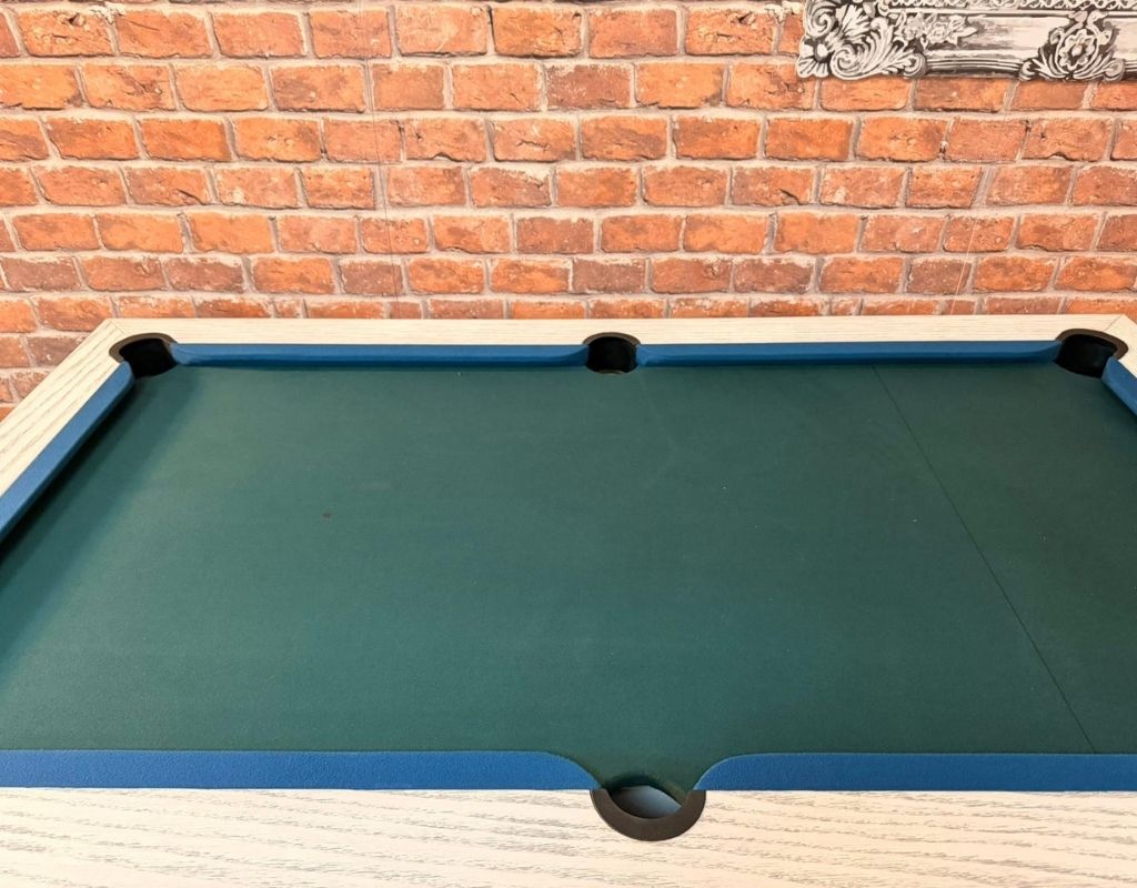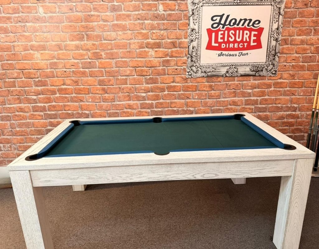 The Chester is an English pool table using 2” red and yellow balls as standard, with a one piece slate bed, available in 6ft size and finished in White Oak, and fitted with Smart Ranger Green cloth and Slate Cushions.