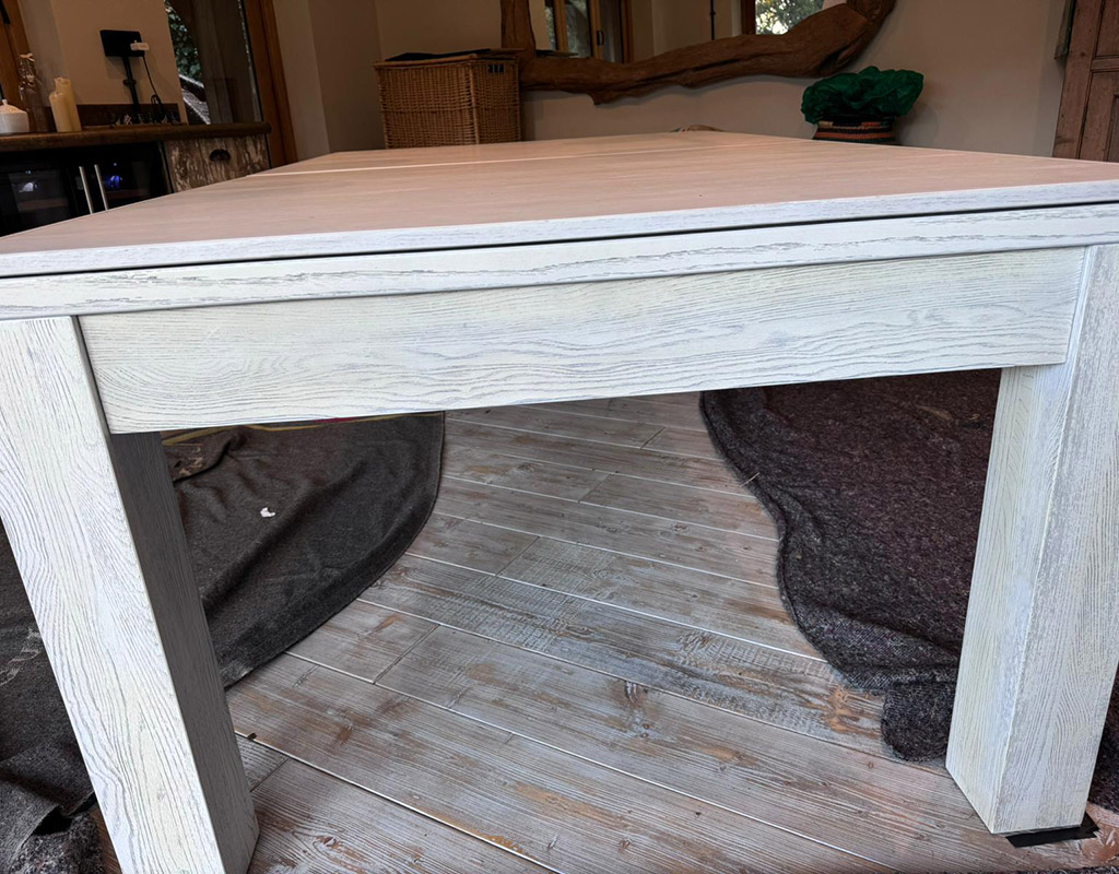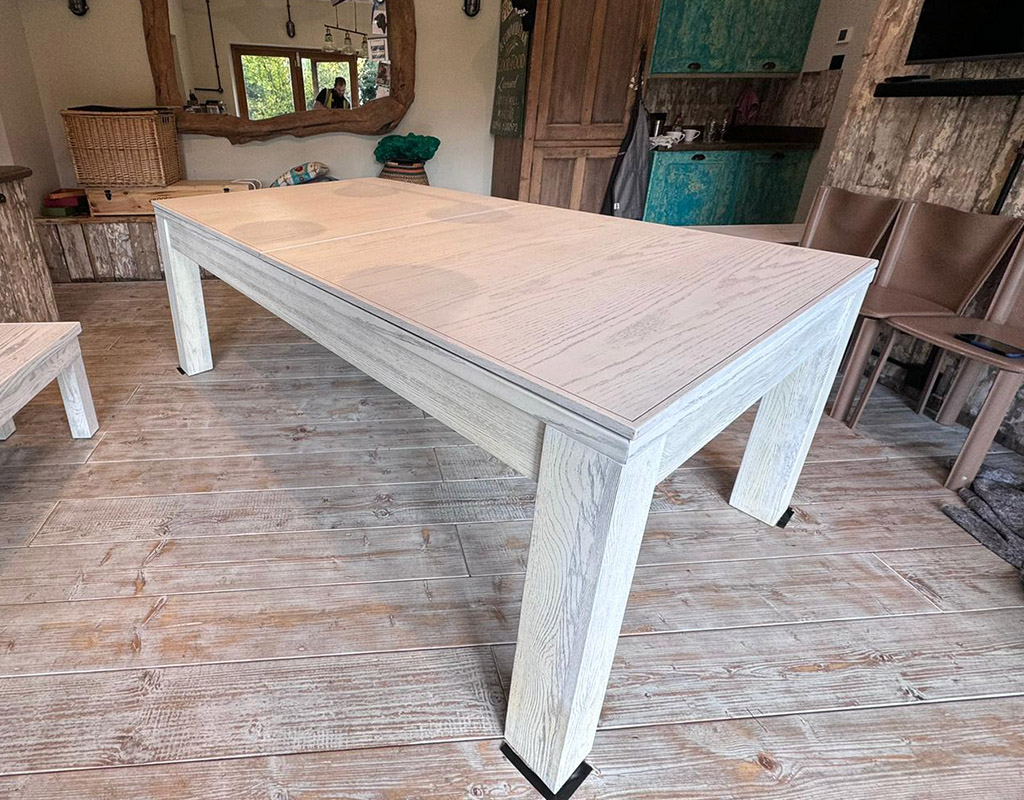 The Signature Chester White Solid Wood Pool Dining Table: 7ft - Warehouse Clearance comes with Free Delivery and Installation, over £250 of Free Accessories, plus we are the exclusive retailers for this table.