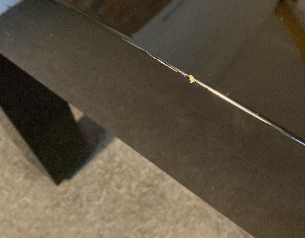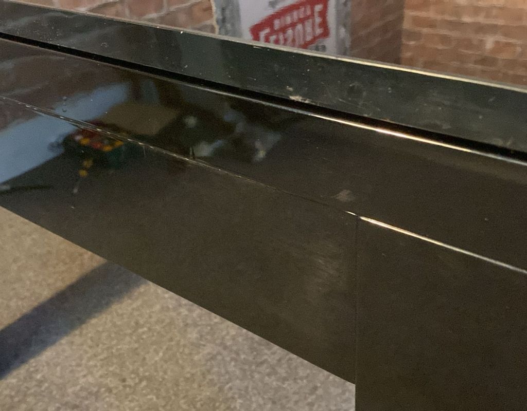 - Table has a lot of marks and scratches (hard to capture on the high gloss black)