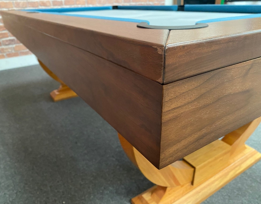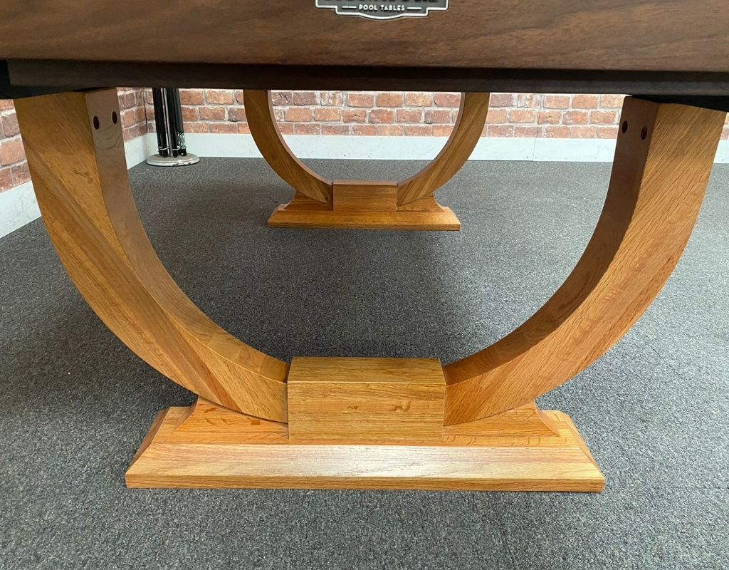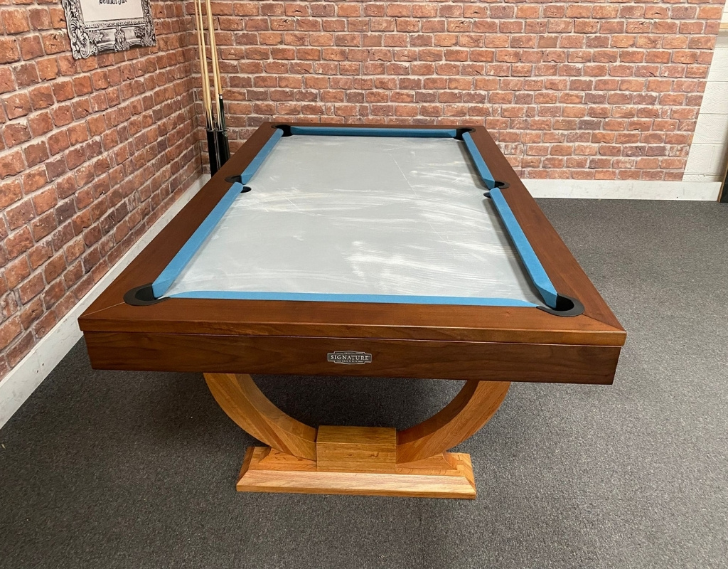 This Signature Huntsman Solid Wood Pool Dining Table is available with an Oak Cabinet & Walnut Top Frame