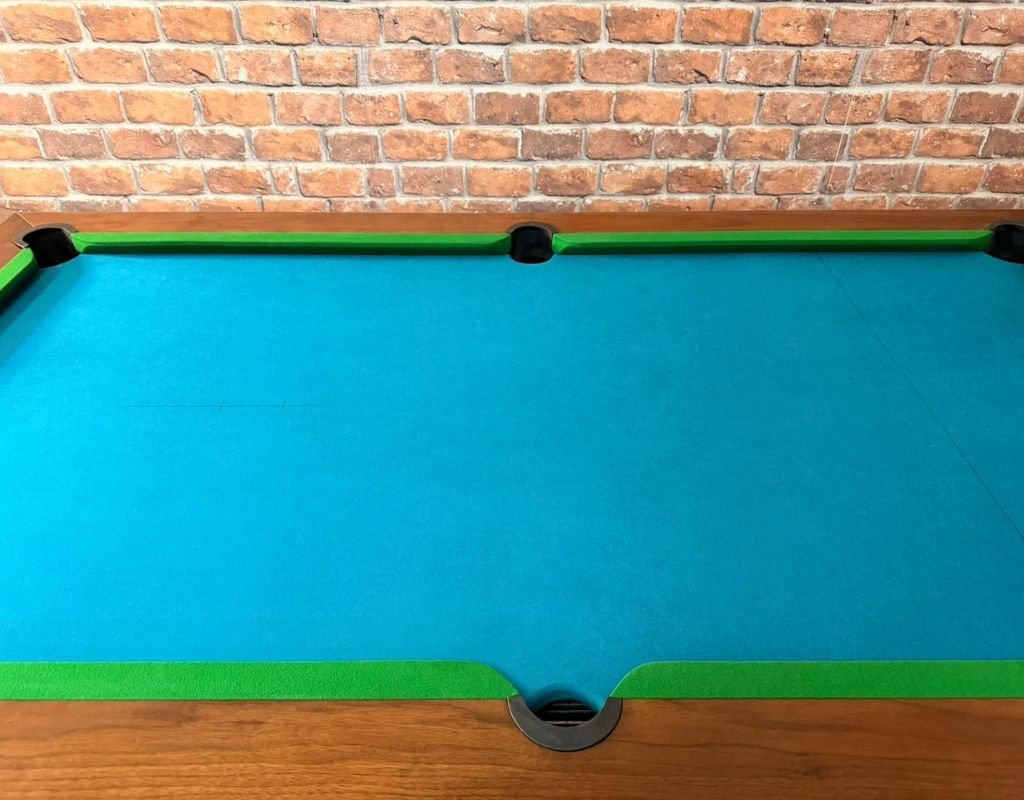 Pool table cloth is a natural product. It goes through a dyeing process, but the original natural wool colour is not neutral. Therefore, the colour of your cloth will be as close to sample as possible but will never totally match, there will always be some natural variance. Furthermore, upon any re-cloth, replacement bed, replacement cushion or remedial job in the same colour choice please bear in mind there won't be an exact colour match due to the natural dyeing process.