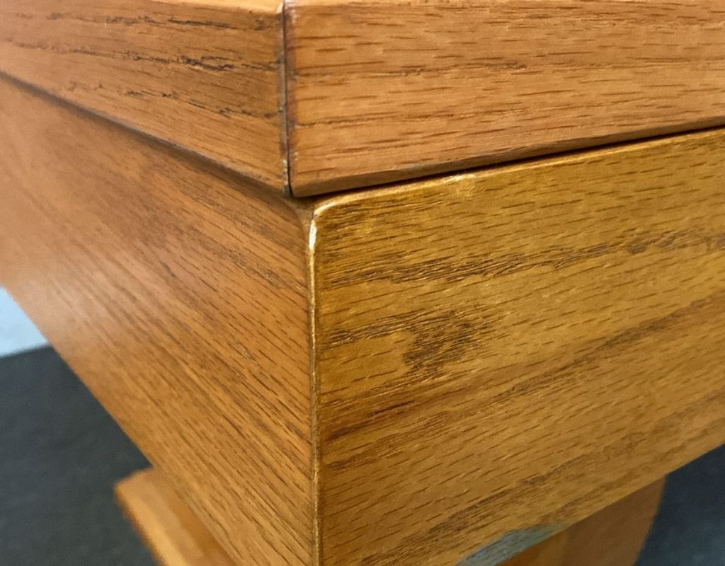 A: Each table is crafted from solid oak or walnut, offering superior strength and durability compared to MDF or lower-quality woods.