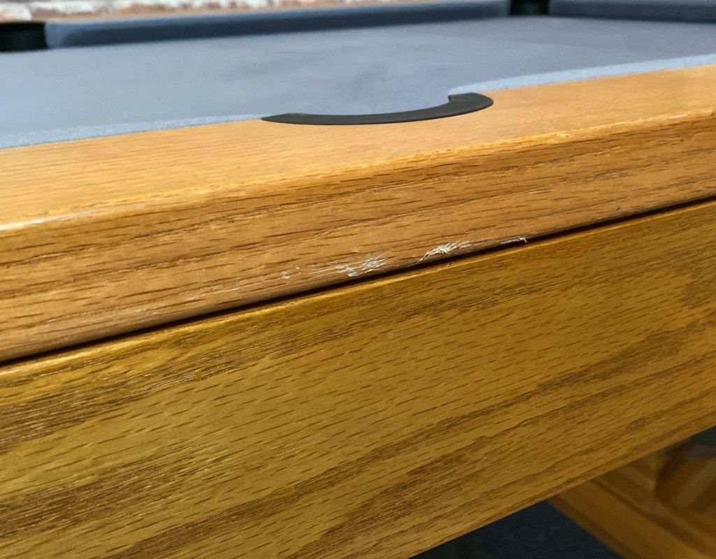 This table is part of our Warehouse Clearance sale. These pool tables have minor defects and some cosmetic imperfections. Please see the photos for details. The aforementioned imperfections are as follows:
