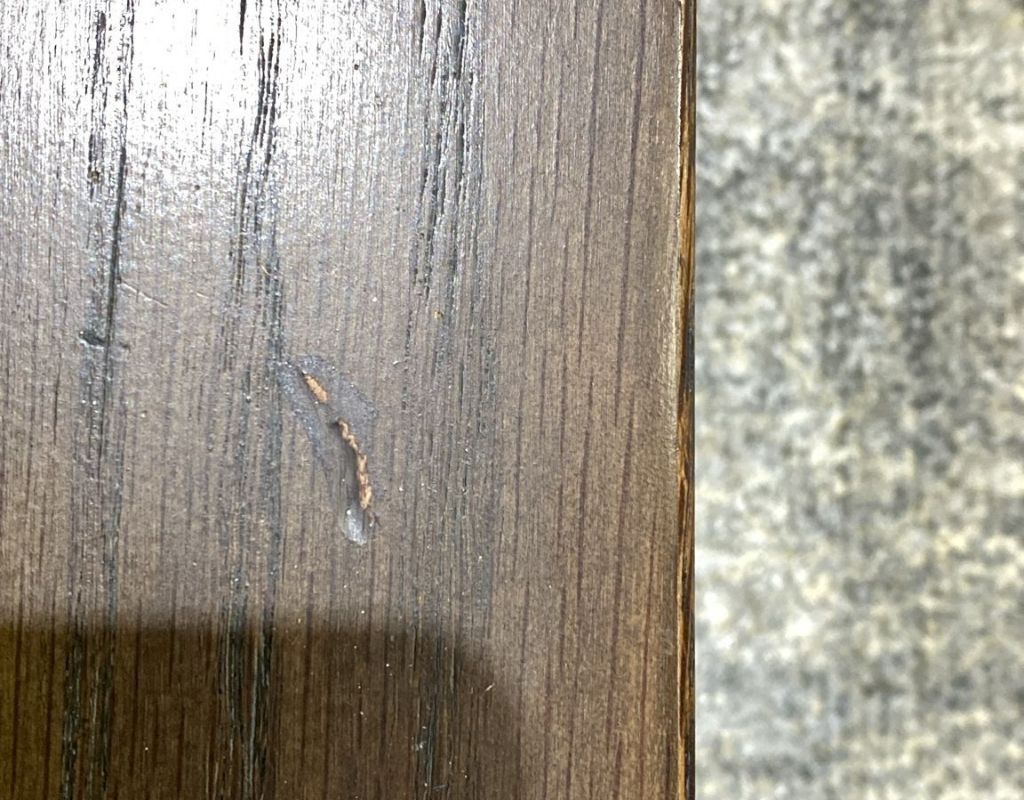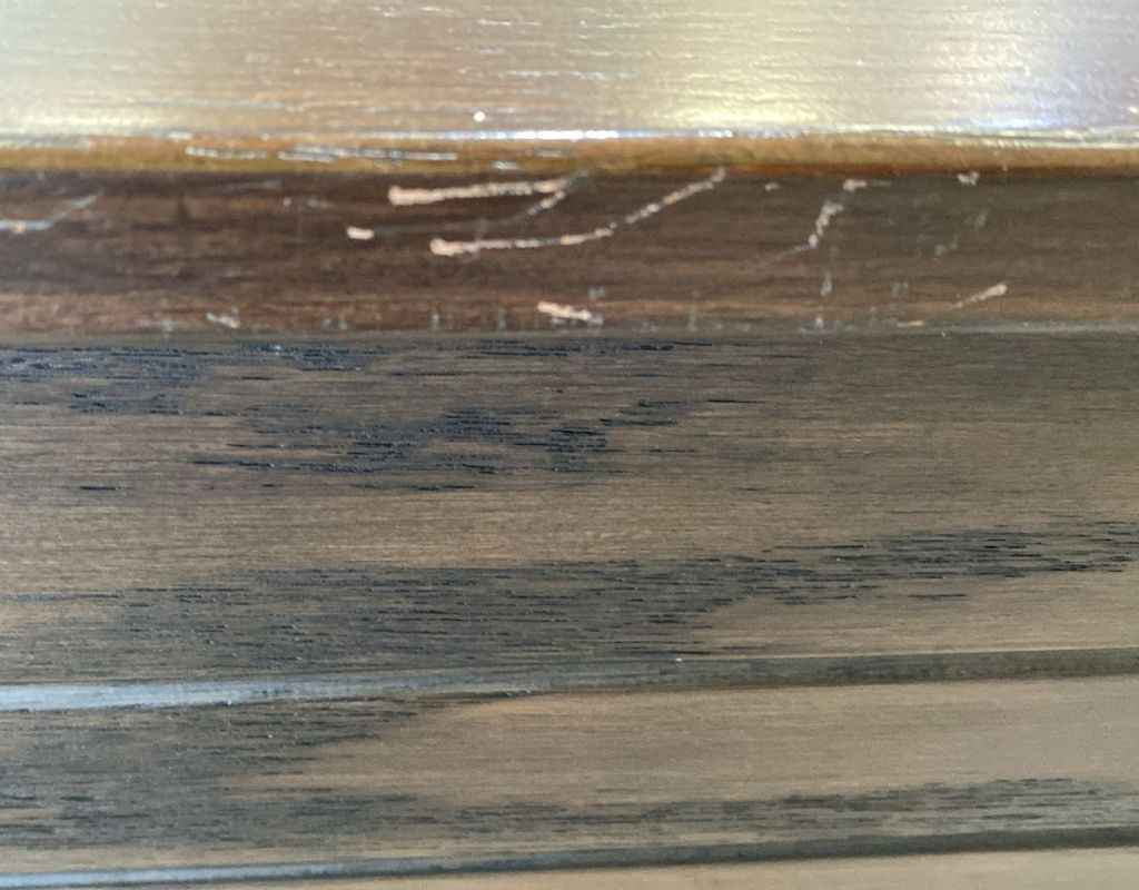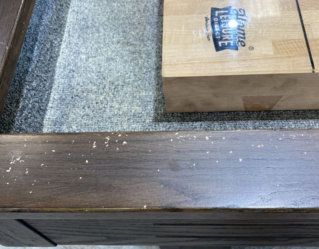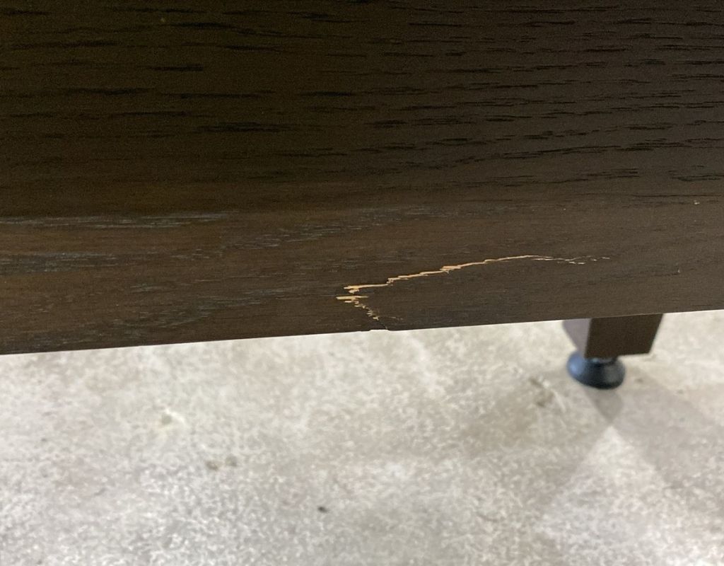 - Underside of cabinet has marks/chips where screws have previously been drilled too far through.