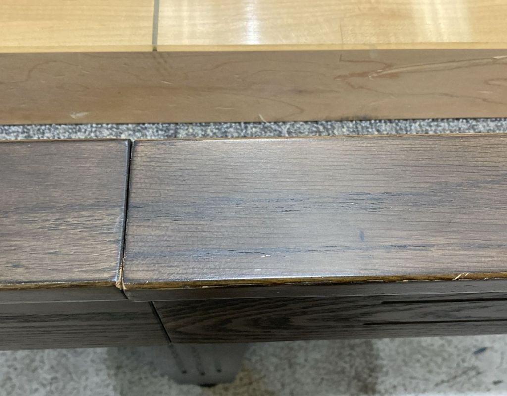 This shuffleboard table is part of our Warehouse Clearance sale. These shuffleboard tables have minor defects, which we have noted below, and some cosmetic imperfections. Please see the photos for details.