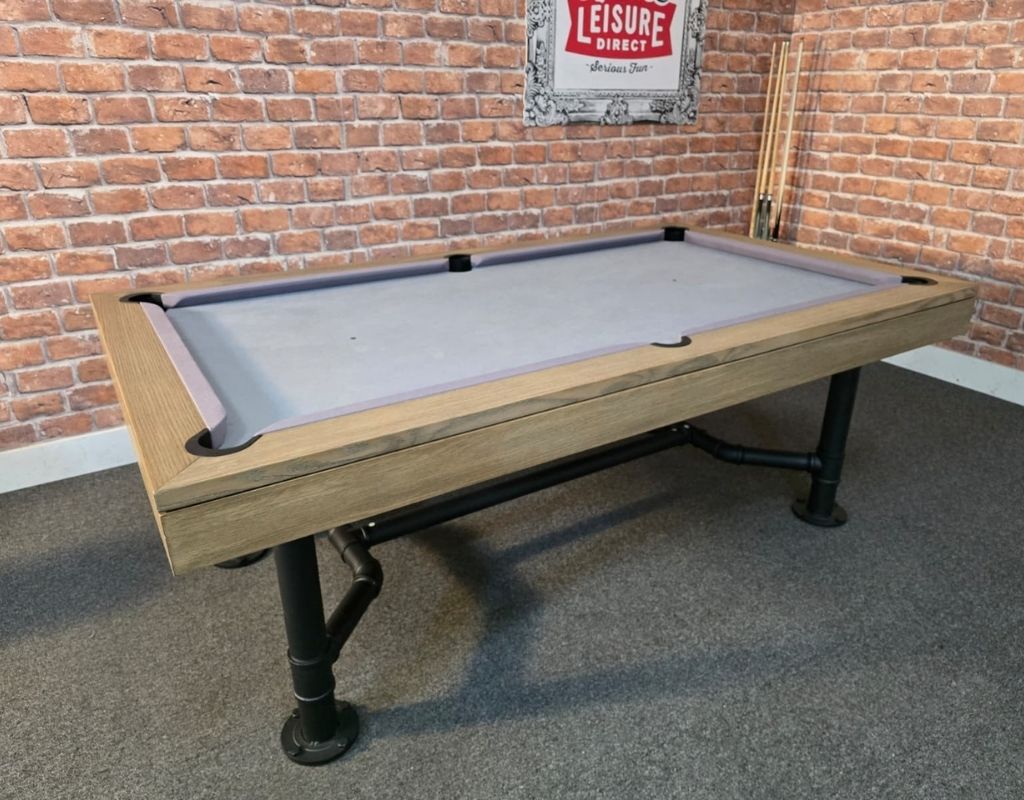 This table is part of our Warehouse Clearance sale as it has been returned. This table has no damages or imperfections and is in perfect condition. This table is only available in with Hainsworth Smart Red Cloth and Silver Mist Oak Finish.