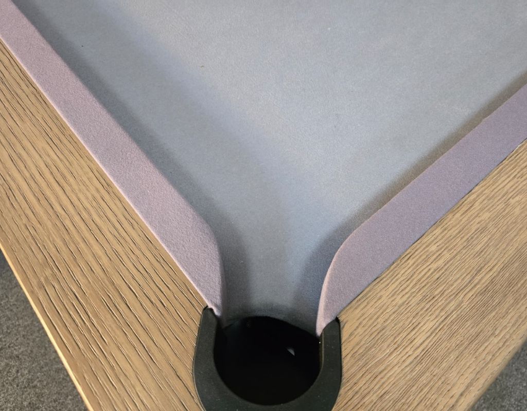 The Signature McQueen Silver Mist Oak Pool Dining Table with Hainsworth Smart Silver Cloth: Warehouse Clearance comes with Free Delivery and Installation, over £250 of Free Accessories, plus we are the exclusive retailers for this table.