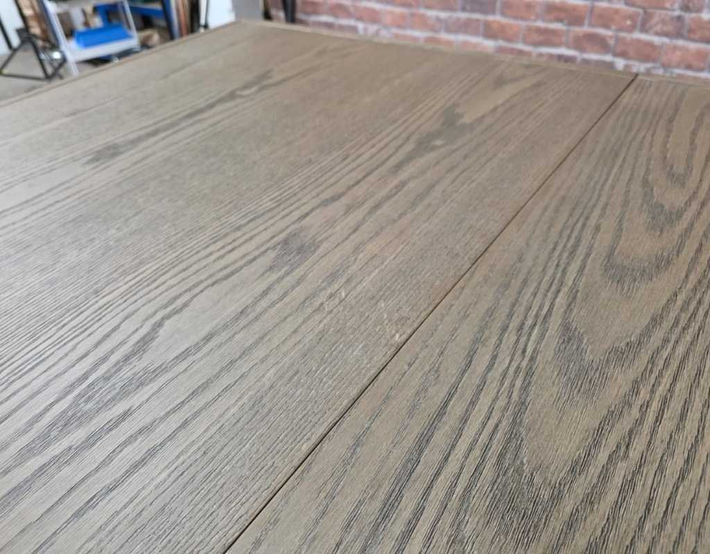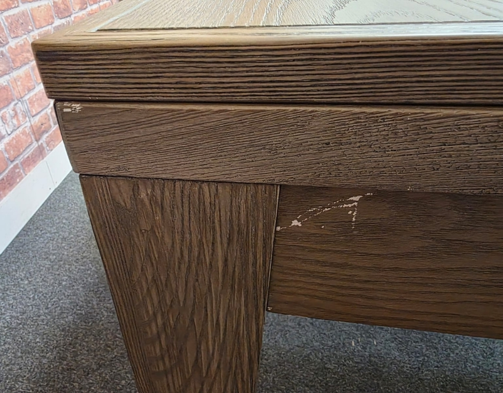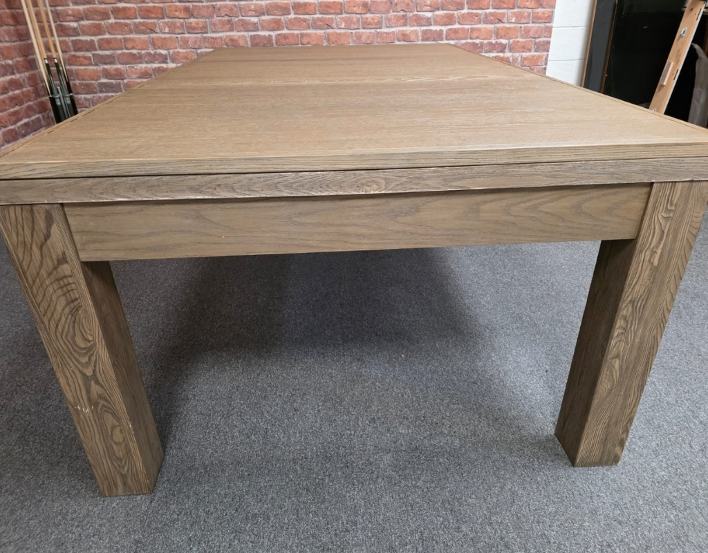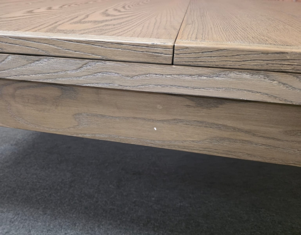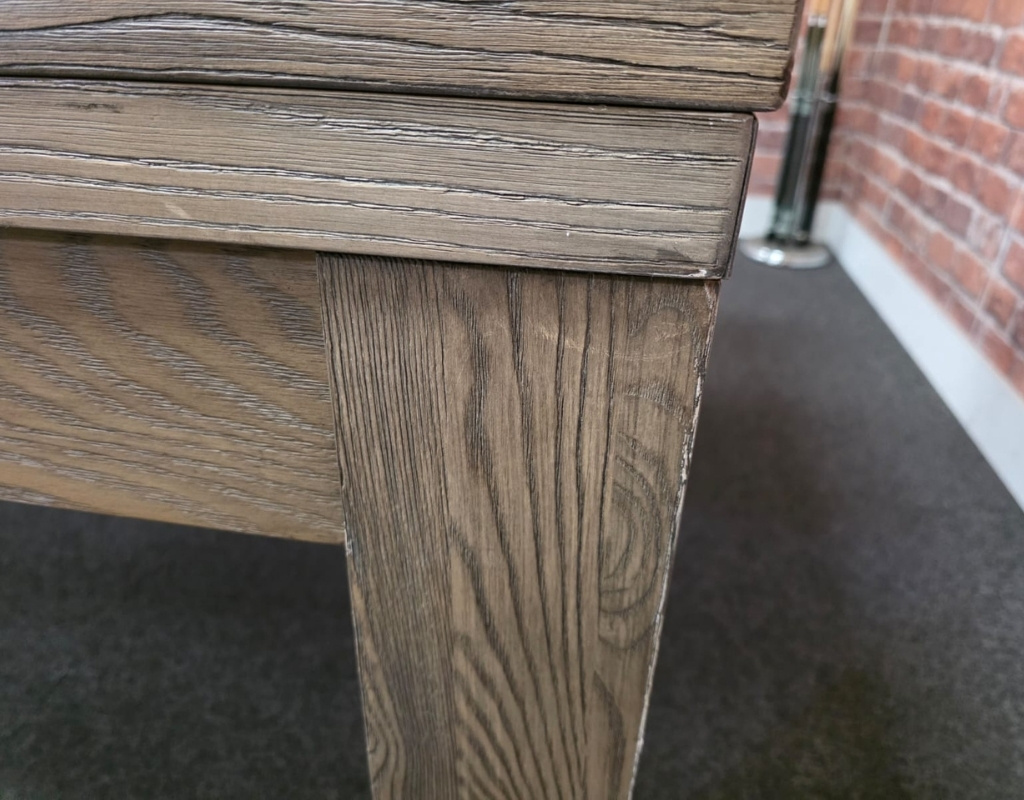 This table is finished in the previous Silver Mist finish, and will be re-clothed upon sale.