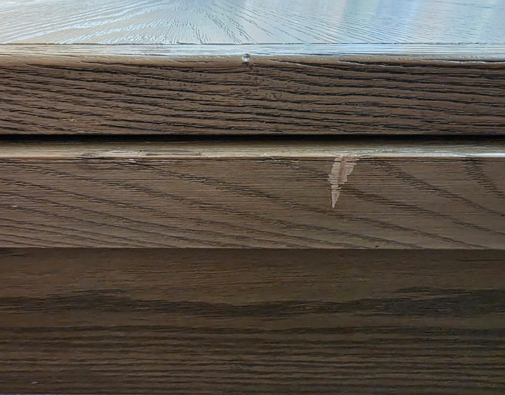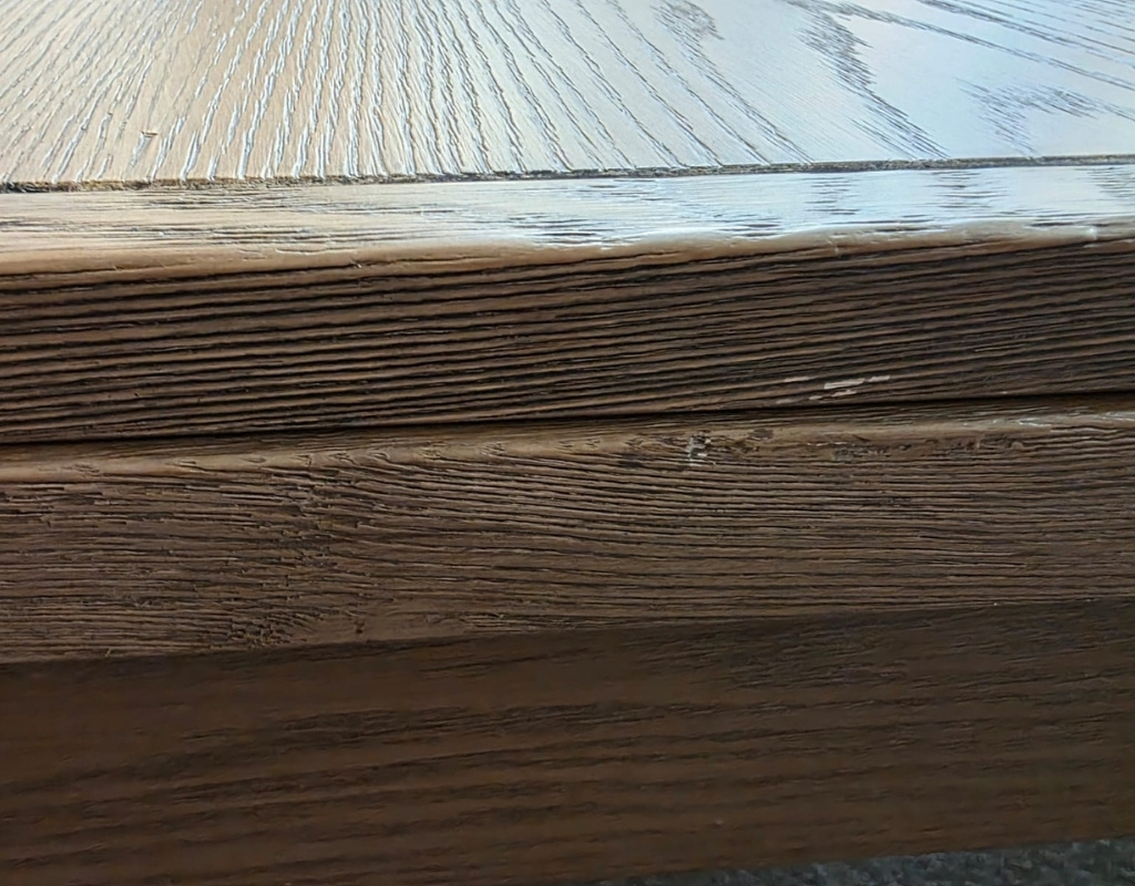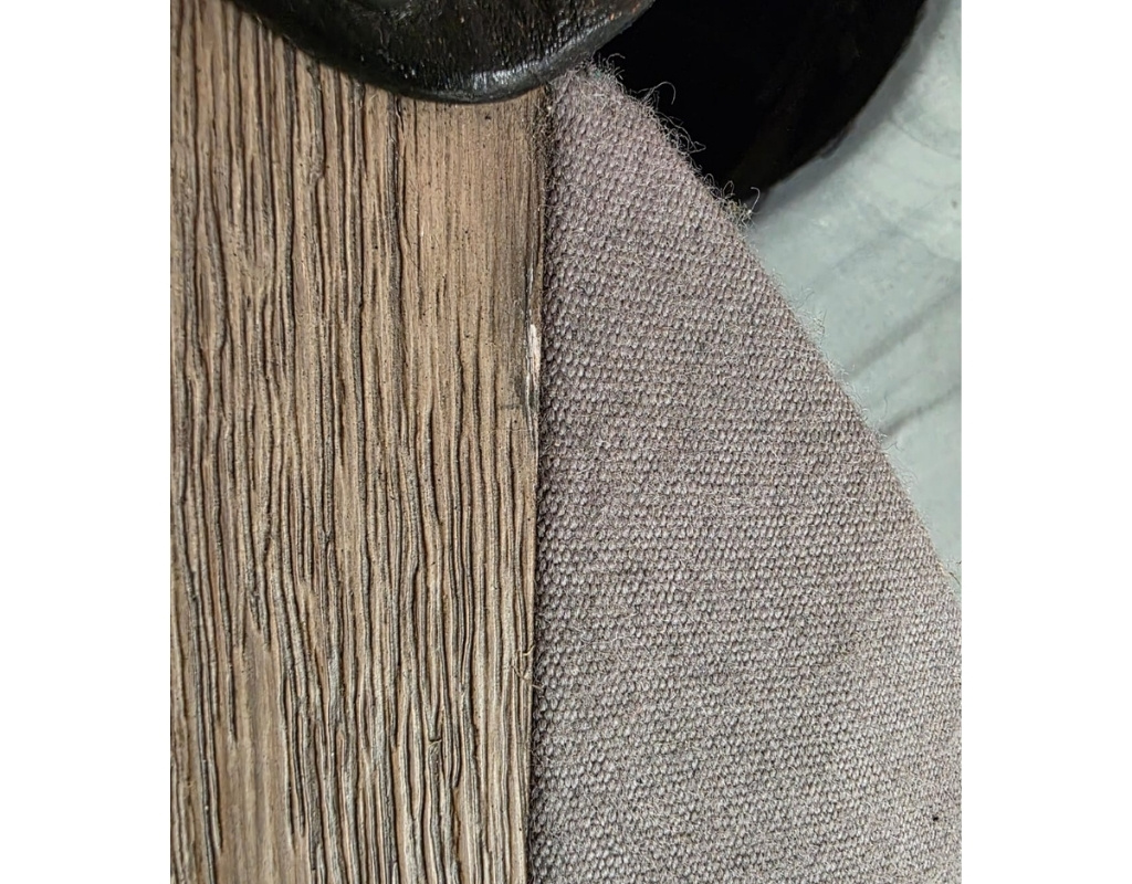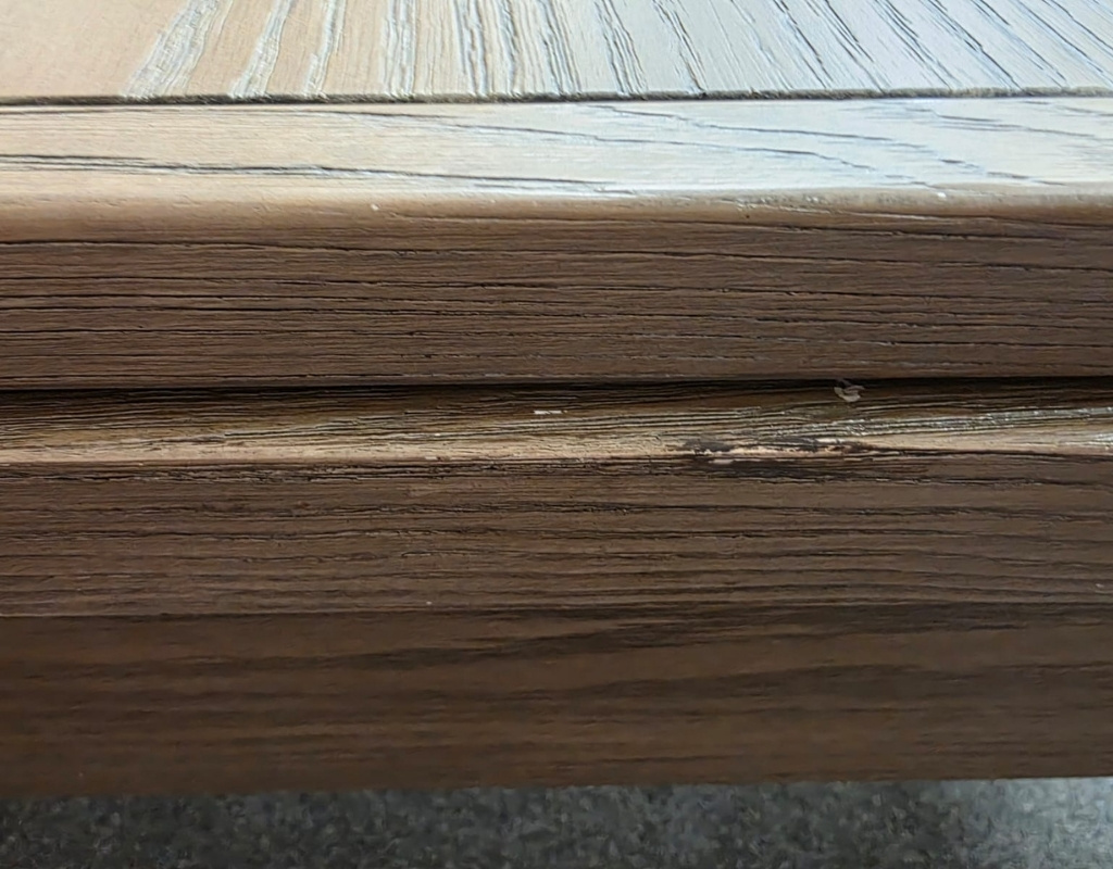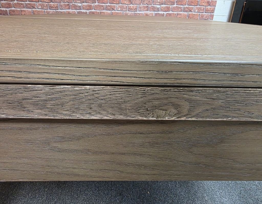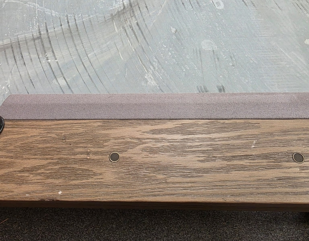 This table is finished in the previous Silver Mist finish, and will be re-clothed upon sale.