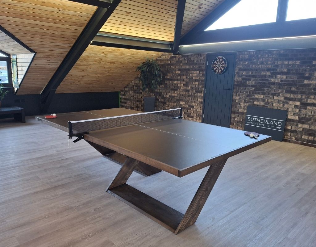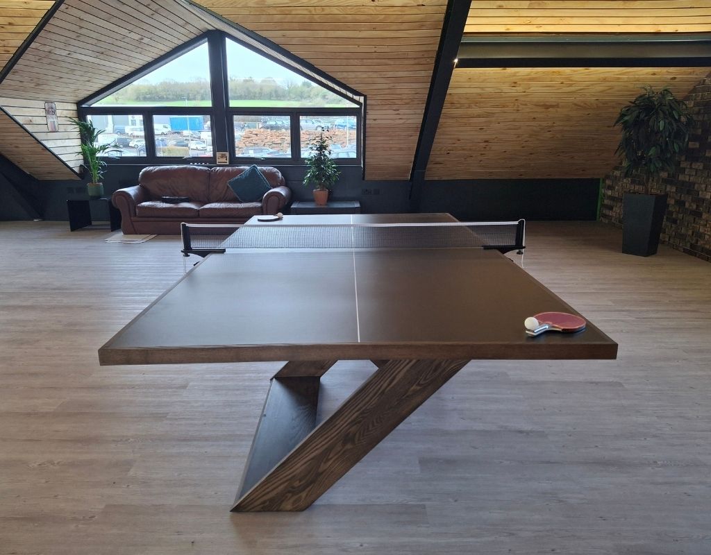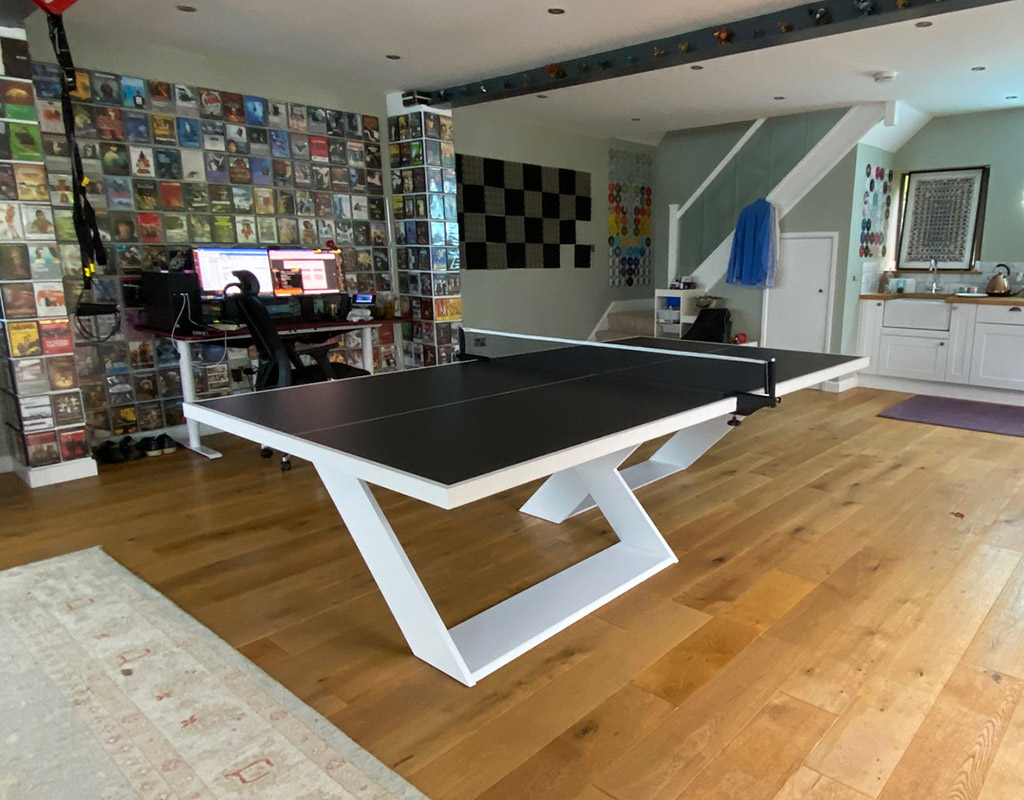 With beautiful asymmetric legs that offer a 21st Century look, this table has a modern aesthetic and brings a bold design statement to table tennis.